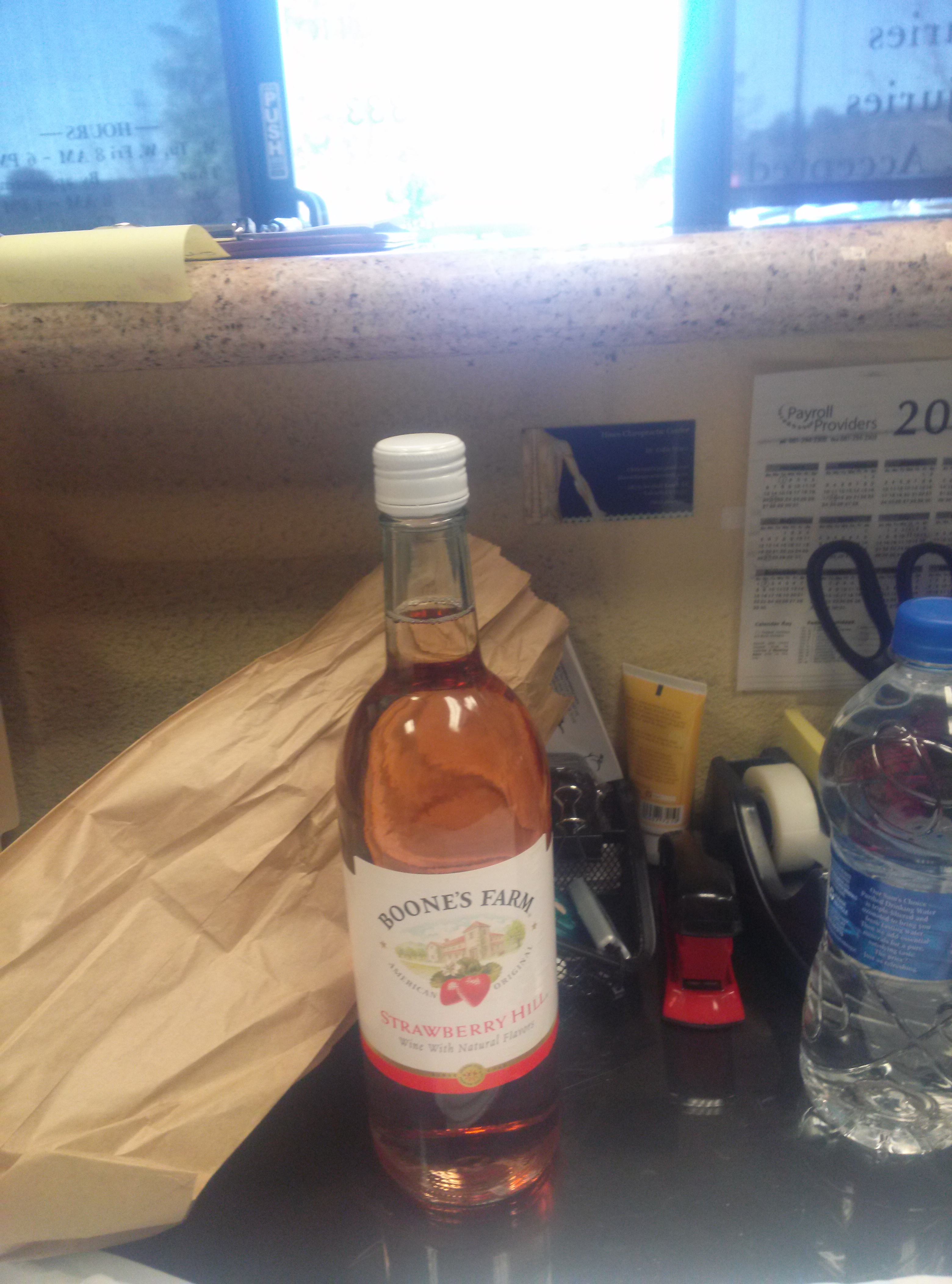 Last Saturday I had two clients bring me gifts for no reason except they wanted to. It made my heart happy. The first  a paper bag containing a bottle of Boone’s Farm.